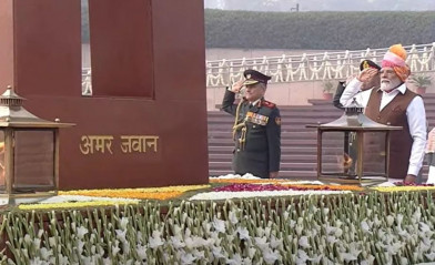 नई दिल्ली। प्रधानमंत्री नरेन्द्र मोदी ने शुक्रवार को 75वें गणतंत्र दिवस के मौके पर राष्ट्रीय समर स्मारक जाकर शहीदों को कृतज्ञ राष्ट्र की ओर से श्रद्धांजलि अर्पित की। इसके साथ ही देश में गणतंत्र दिवस समारोह की शुरुआत हो गई। इस अवसर पर रक्षा मंत्री राजनाथ सिंह, प्रमुख रक्षा अध्यक्ष जनरल अनिल चौहान और तीनों रक्षा सेवाओं के प्रमुख भी मौजूद थे।