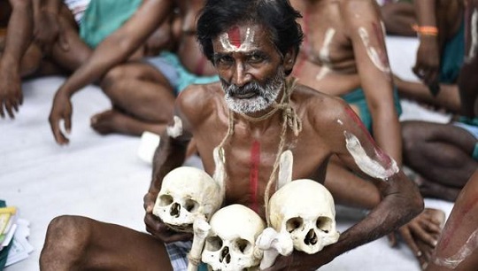 तमिलनाडु के किसानों ने मानव कंकालों के साथ अर्धनग्न होकर किया विरोध प्रदर्शन