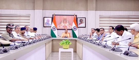 उत्तर प्रदेश के मुख्यमंत्री योगी आदित्यनाथ ने आज यहां अपने सरकारी आवास पर एक उच्चस्तरीय बैठक में अयोध्या में संचालित अवस्थापना विकास सम्बन्धी परियोजनाओं की समीक्षा की तथा श्रीराम जन्मभूमि मंदिर के सुरक्षा प्रबन्धन की कार्ययोजना के सम्बन्ध में विचार-विमर्श करते हुए आवश्यक दिशा-निर्देश दिए।