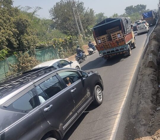 कैप्शन- जालंधर शहर के पास राष्ट्रीय राजमार्ग पर दकोहा फ्लाईओवर की सर्विस लेन के माध्यम से यातायात के सुचारू ढंग से चलने की एक तस्वीर।